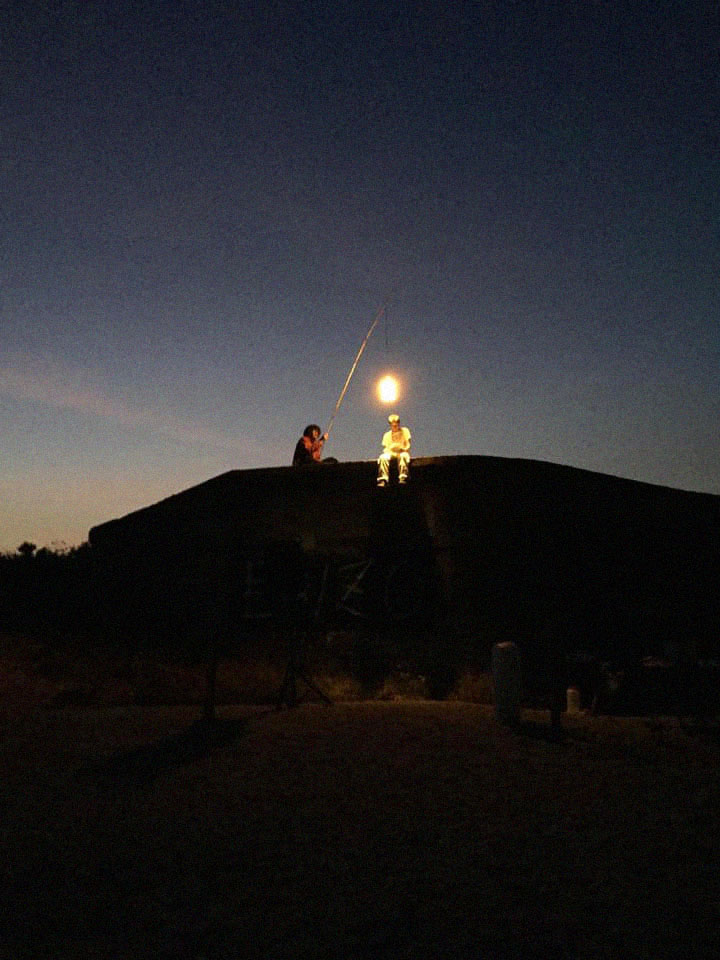 Les deux regardent vers l’Océan et accompagnent les spectateur·ices qui aperçoivent le radeau en provenance de l’île du Pilier. Après l’amarrage collectif, aidé en grande pompe par les spectateurs,, leur récit est rapporté, captures audio et vidéos à l’appui.