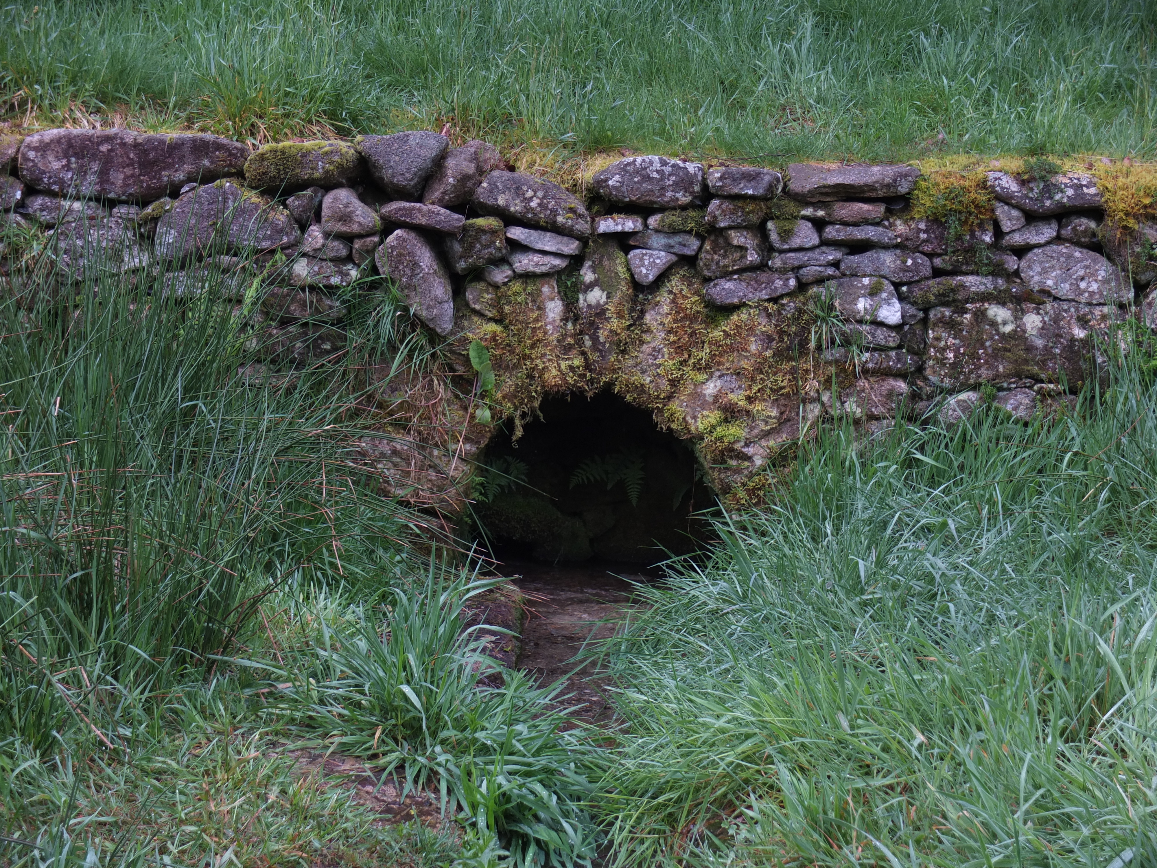 Au inter d'Eymoutiers, autre faune : des gueules cassées, des gens qui sortent avec un siphon et une bouteille de whisky ou les bras chargés de saucisses, pantalon de chantier enfilé malgré la pause dominicale. Le long de la Vienne, toujours ce sol spongieux qui mouille les pompes. On descend de la bulle du plateau par des gorges somptueuses. La rivière a pris de la vitesse, alimentée par ses 1000 vaches et peut maintenant faire tourner des usines électriques. On longe les rails du train, tantôt passant au dessus des tunnels, tantôt le long de la rivière, où nous croisons quelques promeneureuses et un quad bougon. Ambiance post-industrielle, une forge envahit de végétation, des canaux automatiques et cette terre molle qui nous fait arriver sur une zone plus agricole où un fana de la Corse remplit nos gourdes.