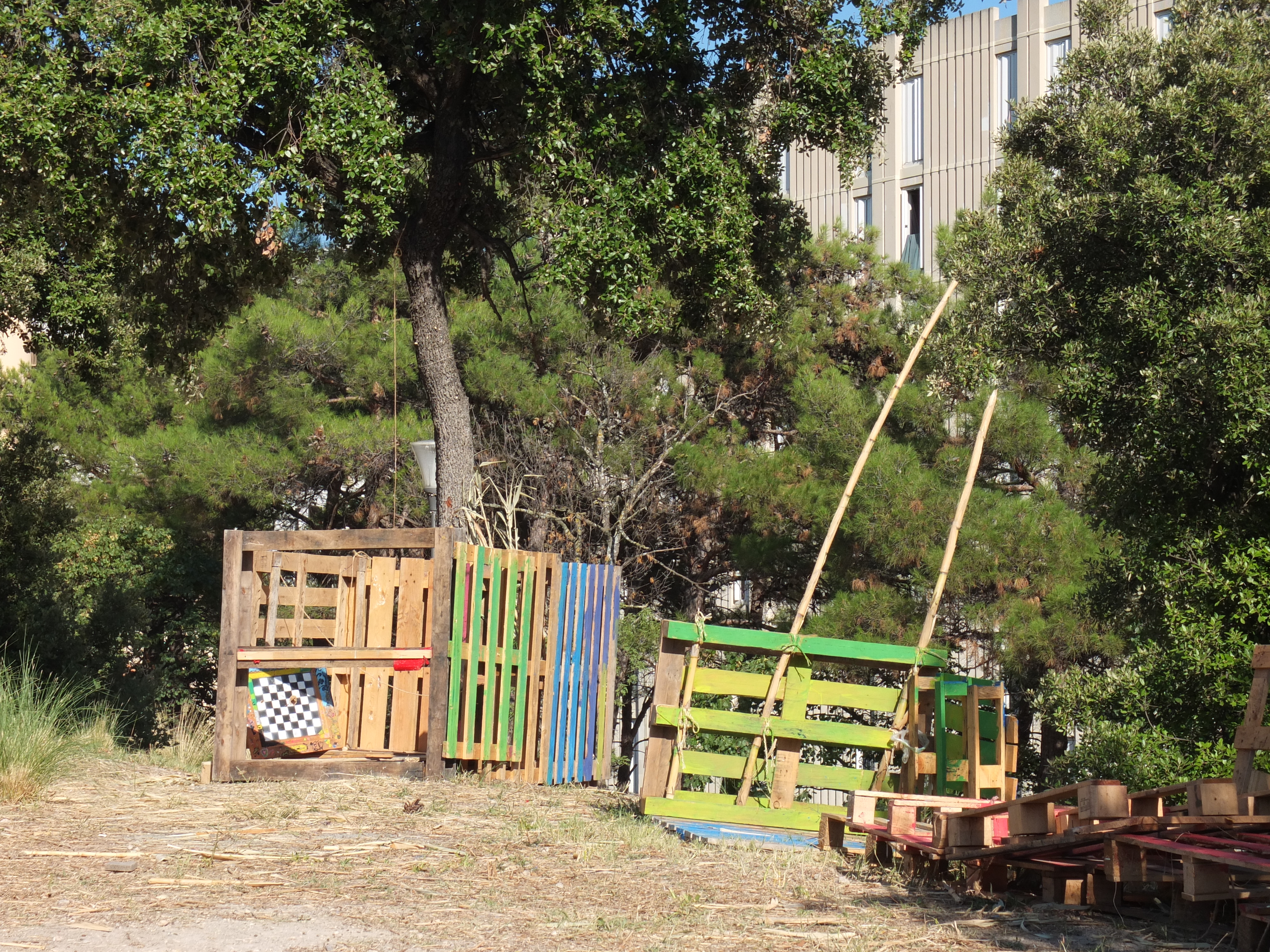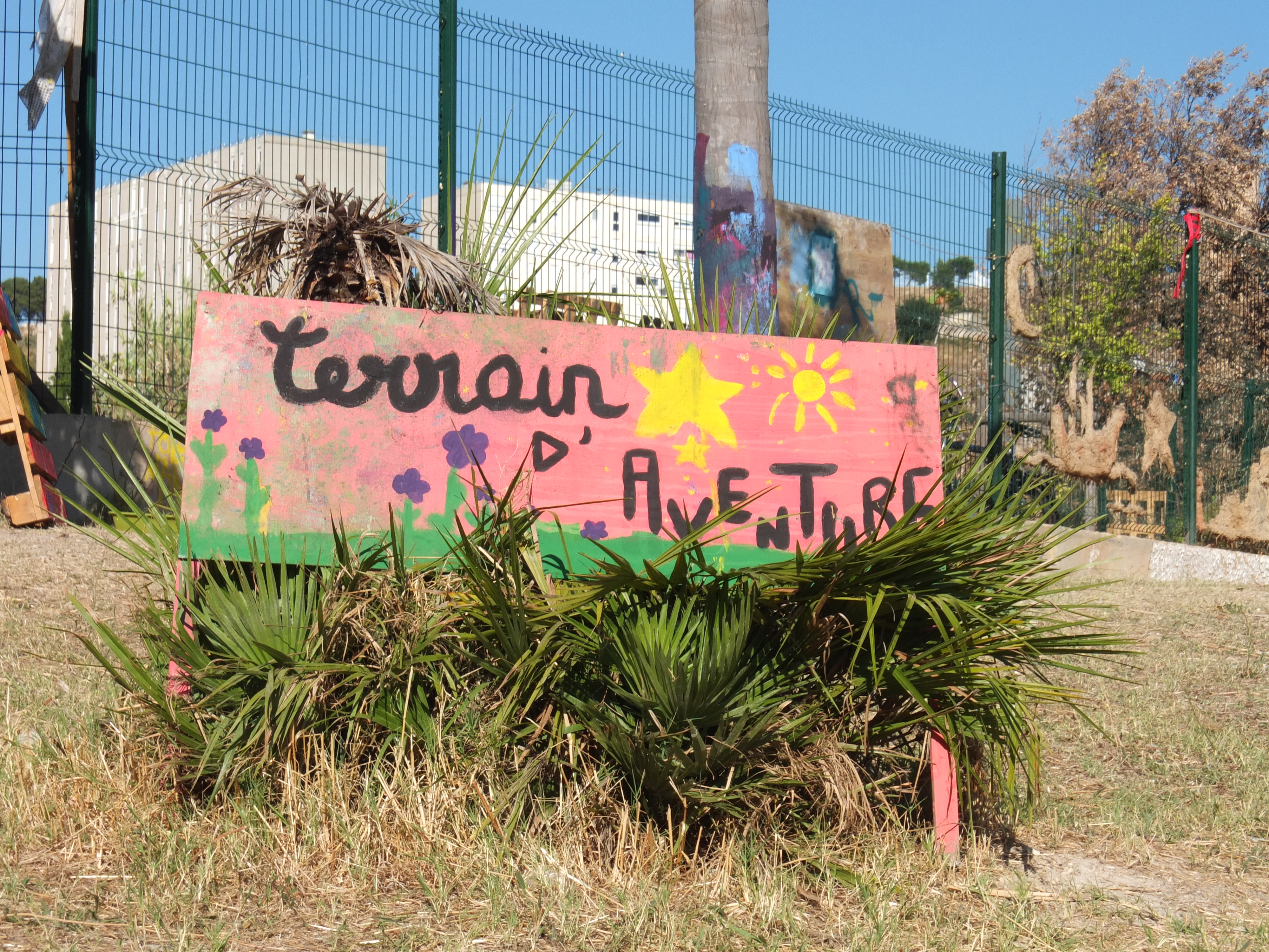 Le terrain d’aventure de la Castellane existe depuis cinq ans au parc de la Jougarelle. Il est organisé par CEMEA Paca, les associations 3.2.1 et Baguette Magique ainsi que les habitant·es du quartier afin que le terrain soit ouvert tous les jours de 11h à 19h, de manière publique, gratuite et accessible à tous·tes.